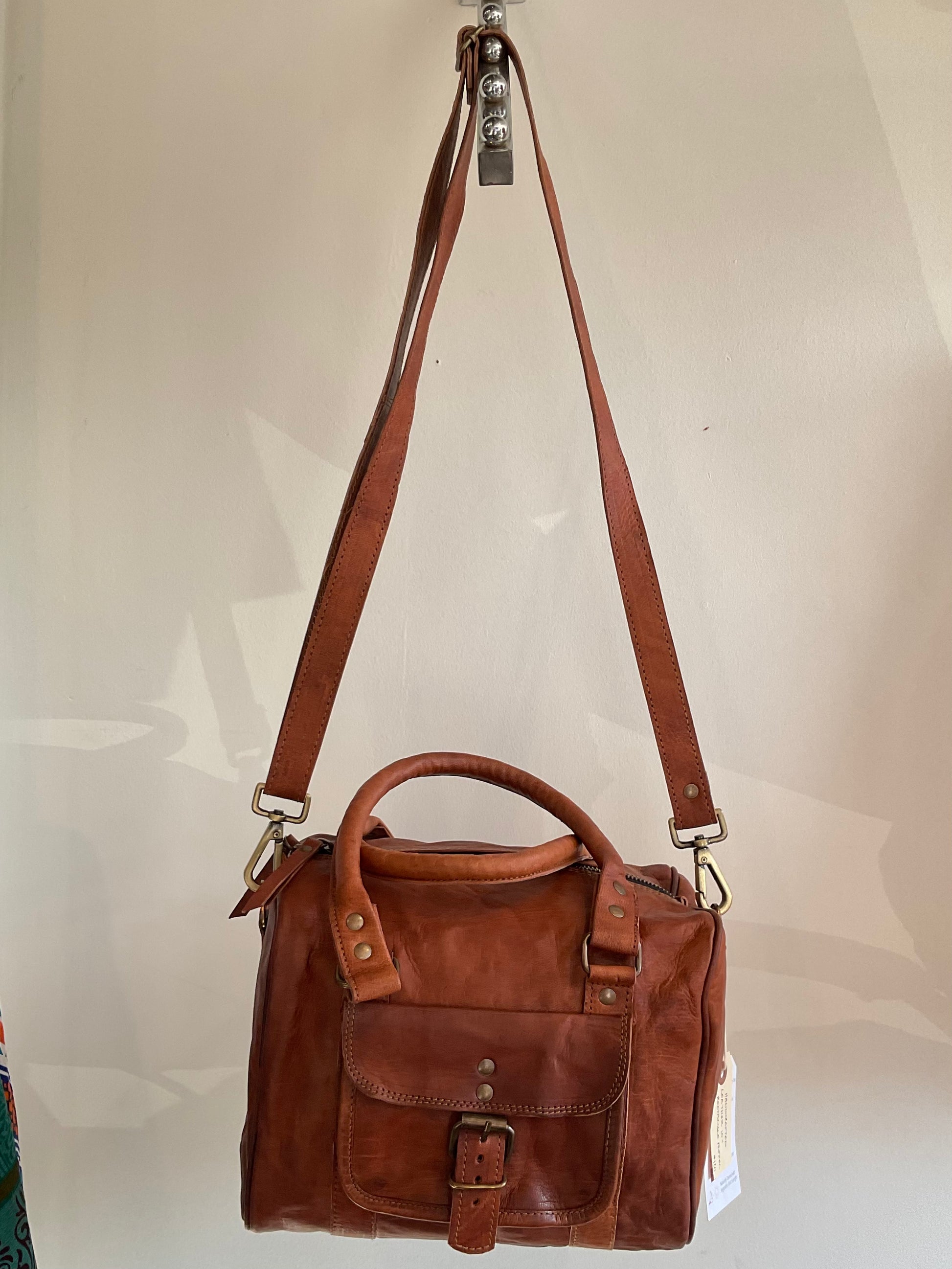 Handmade with care in India by a family of expert artisans. The bags are naturally tanned and processed using natural methods. All imperfections and blemishes are part of the natural journey of the animal hide, each bag is a little bit different from the next.