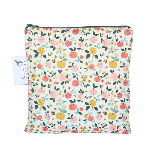 A handy-dandy snack bag at your service! Made in Canada with 100% cotton outer, 100% polyester with polyurethane membrane (PUL) and YKK zippers that are lead, nickel free and tested to meet CPSIA standards.